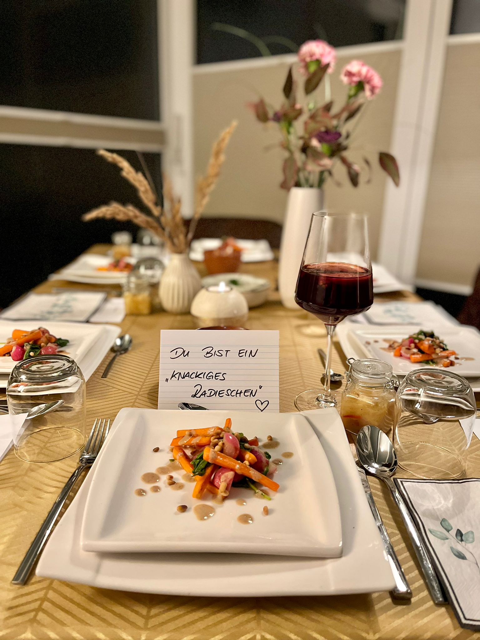 1.  Der Klassiker: Selfmade Einstimmungsgetränk, 3-Gänge-Menü